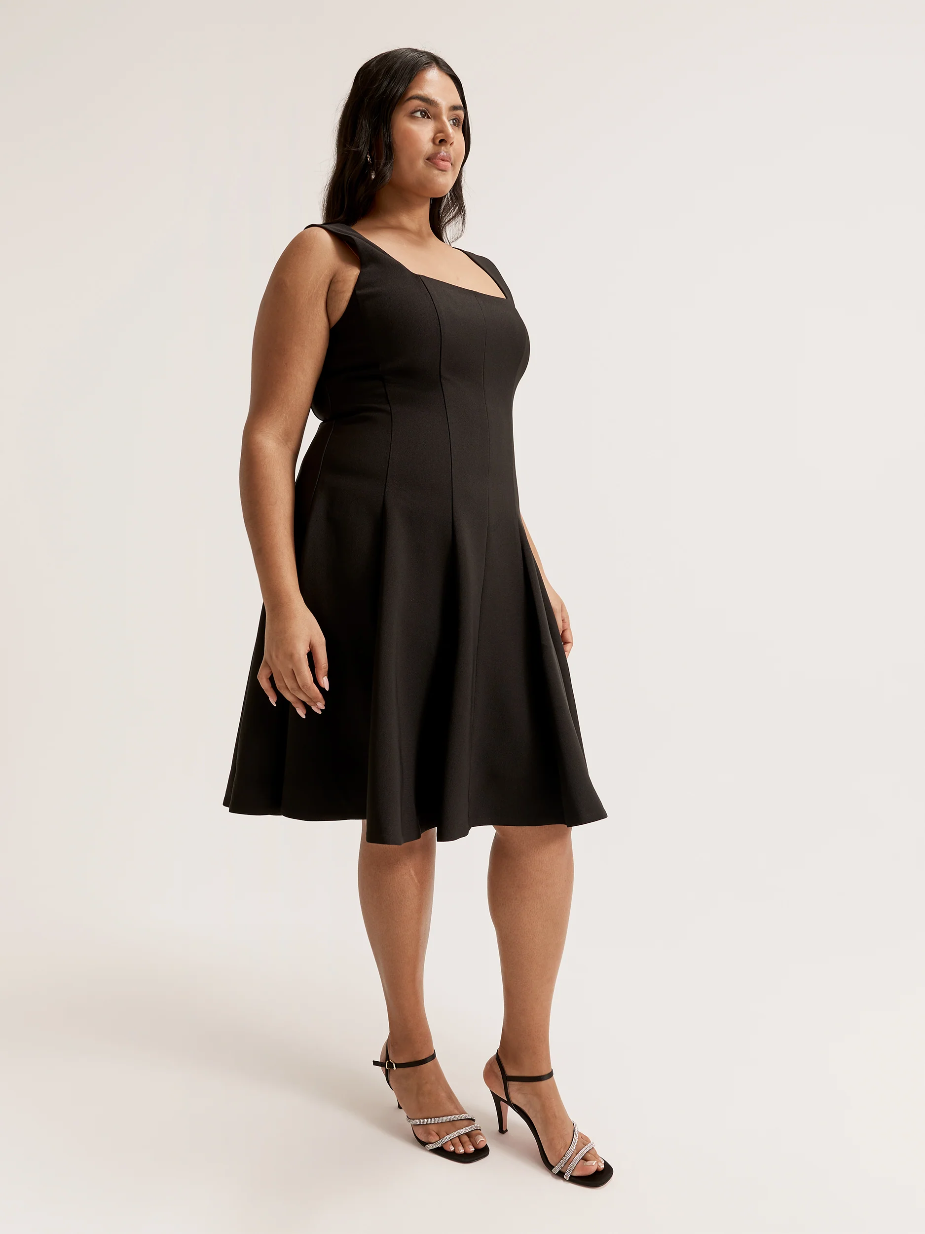 Simple yet simply elegant, the Barcelona Flippy Dress is the latest addition to our exclusive Occasion range. Made with our luxurious stretch crepe fabric with a smooth satin lining, the Barcelona Flippy Dress is a structured piece with a fitted bodice and panel detailing that fans out into a flowing a-line skirt. Sleeveless with a flattering square neckline ideal for showing off statement jewellery, the Barcelona Flippy Dress is finished with a centre back exposed zip with ribbon pull tab. A versatile events dress, the Barcelona Flippy Dress in Black fits the bill for a classic LBD that can be worn to birthdays, weddings, formals, and more.