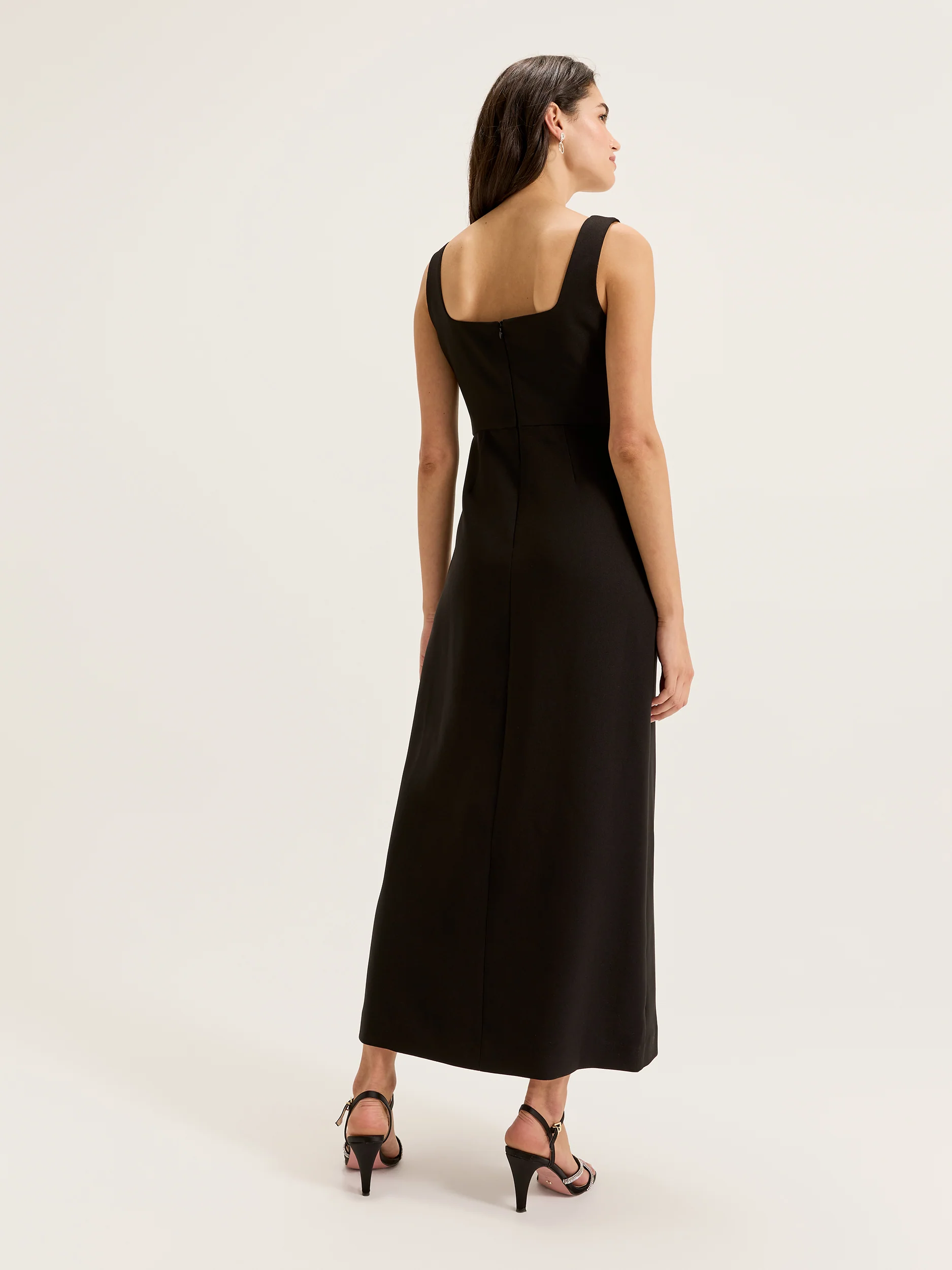 An instantly flattering dress style for bridesmaids of any shape or size, the Review Review Occasion Barcelona Maxi Dress makes a wonderful choice for styling a bridal party in a modern, contemporary look. A versatile style that can be reworn to corporate events, birthdays, and black tie events once the wedding is over, or a great choice for a bridal shower look, the Barcelona Maxi Dress in black is made from a comfortable stretch crepe fabric with stretch satin lining and features a sleeveless fitted bodice with square neckline and straight column skirt with a sexy thigh high split. The Barcelona Sleeveless Review Occasion Dress is cut to a maxi length that falls just above the ankle.