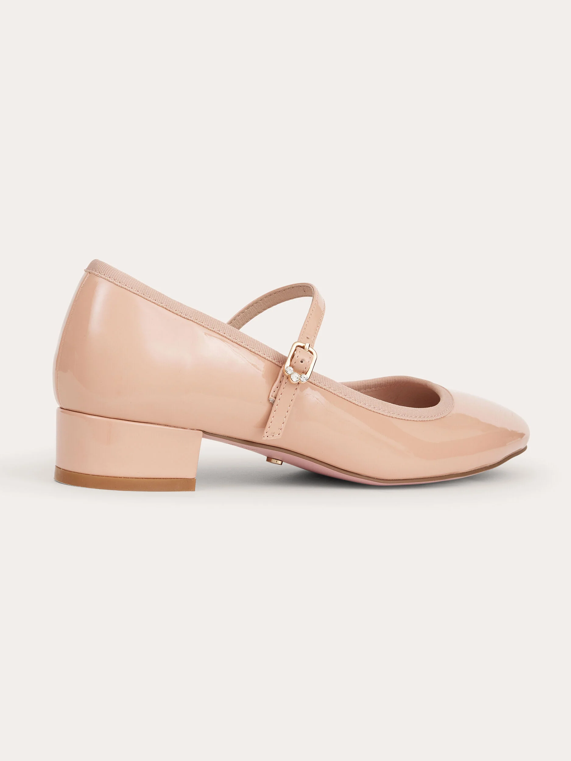 Add the finishing touches to your perfect outfit with the Katy-Jane Ballet Flat! This gorgeous shoe is crafted from a shiny patent leather in a classic nude colourway that can effortlessly be paired with all your favourite dresses, skirts and jeans. This shoe features a rounded toe, adjustable strap with diamante encrusted buckle, and a small block heel to give you just a little lift.