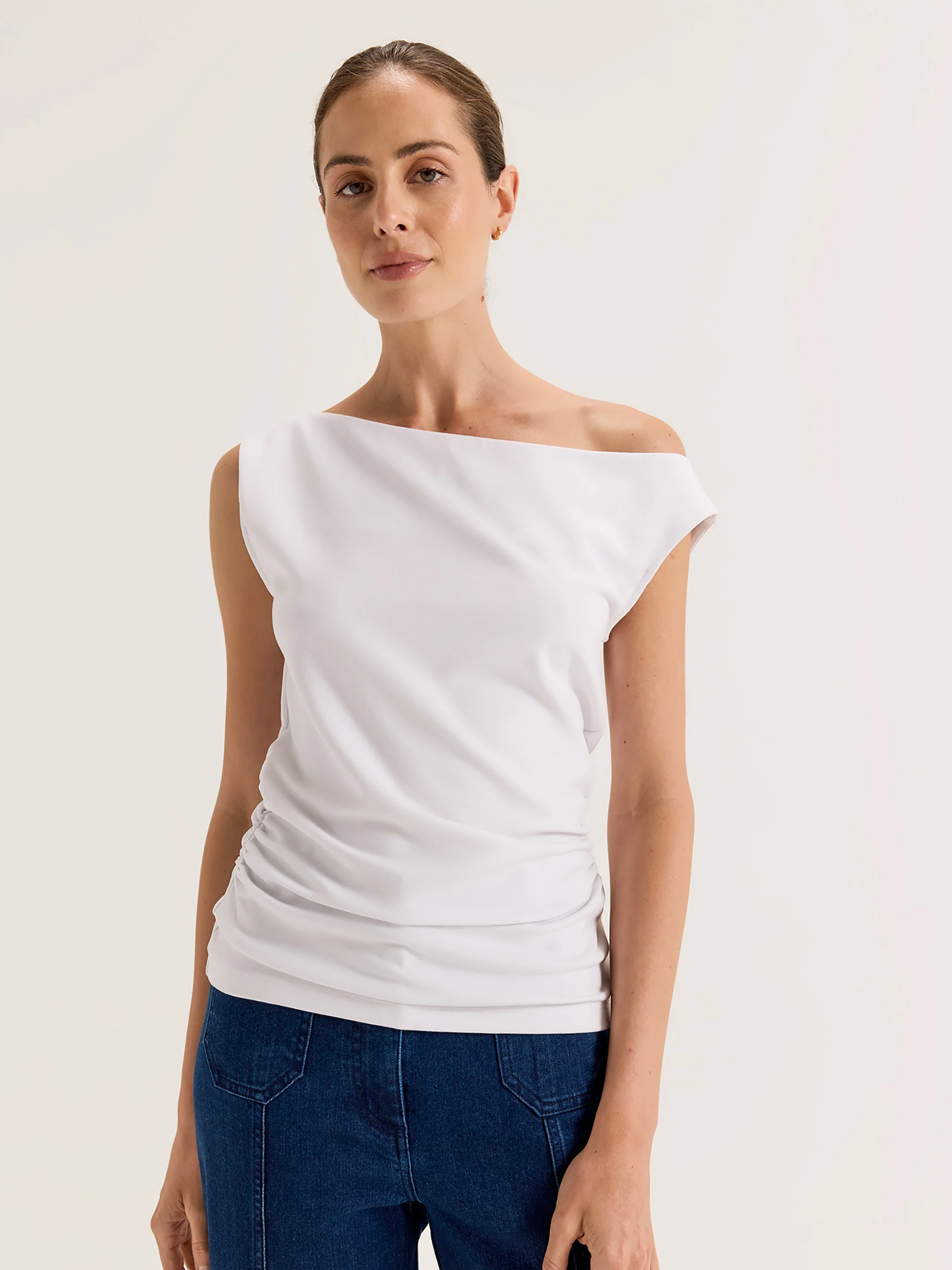 Adding an elegant going out top like the Lincoln Top into your wardrobe rotation can uplift even the simplest outfits. This gorgeous silhouette is designed to help you perfect your day to night outfitting - made of a luxuriously soft fabric with a fitted silhouette, the Lincoln Top features an off-shoulder boat neckline that drapes across the body. With gathered detailing at the sides and comfortable stretch throughout, the Lincoln Top can be paired with simple denim or slinky slip skirts and heels for an effortless desk to dinner table look.