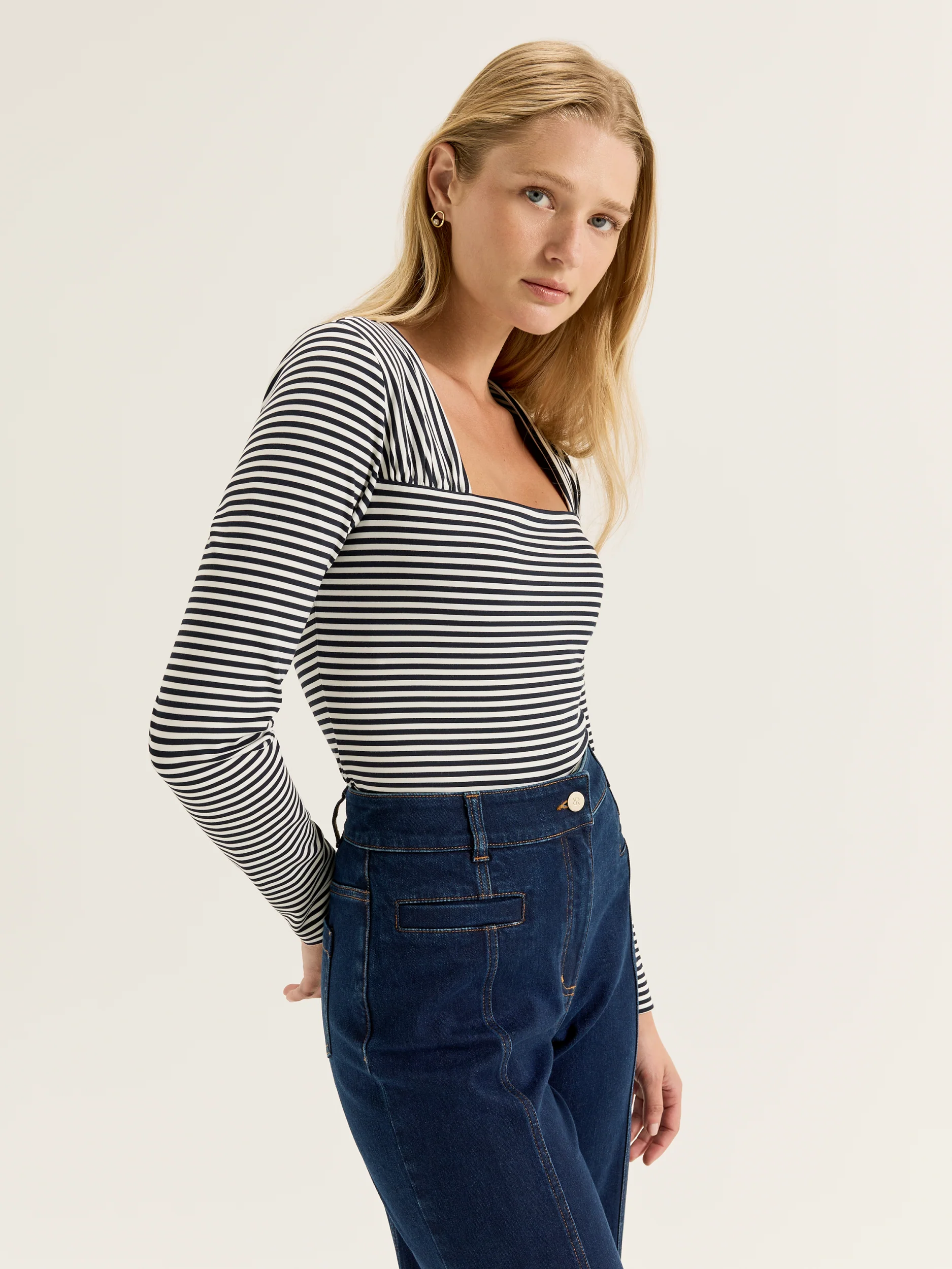 Refresh your wardrobe for the season with refined basics like the Maloney Top. An updated take on a classic Review silhouette, the Maloney Top is made of a lush stretch fabric that sits close to the body but still allows you to move. Cut to a classic fit with a square neckline, soft gathered detailing, and full length sleeves, the Maloney Top is accentuated by the Review monogram embroidered at the hem and a hidden shelf bra for a smooth fit. Perfect for tucking into your favourite jeans and skirts, the Maloney Top makes putting together an outfit for work or weekend simple and easy.