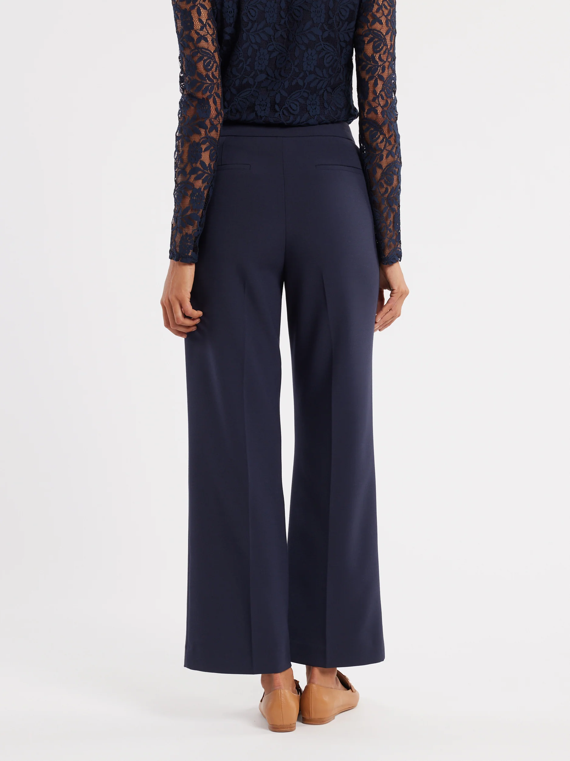 Your new favourite work pants are here! Meet the Molly Pants, the latest addition to our corporate capsule wardrobe. The Molly Pants are made of a luxe fabric blend that feels soft and has plenty of stretch for all day comfort as you rush between meetings, drop-offs, errands, or whatever's on your calendar. Designed with versatility in mind, the Molly Pants have a mid-high rise waist, a flat front with concealed side zip closure, side pockets with functional buttons, and a full-length wide leg that stops right at the ankle. The Molly Pants are available in a classic navy colour that is the perfect base for a chic, refined office look - just pair with a bold floral or printed blouse and stylish loafers.