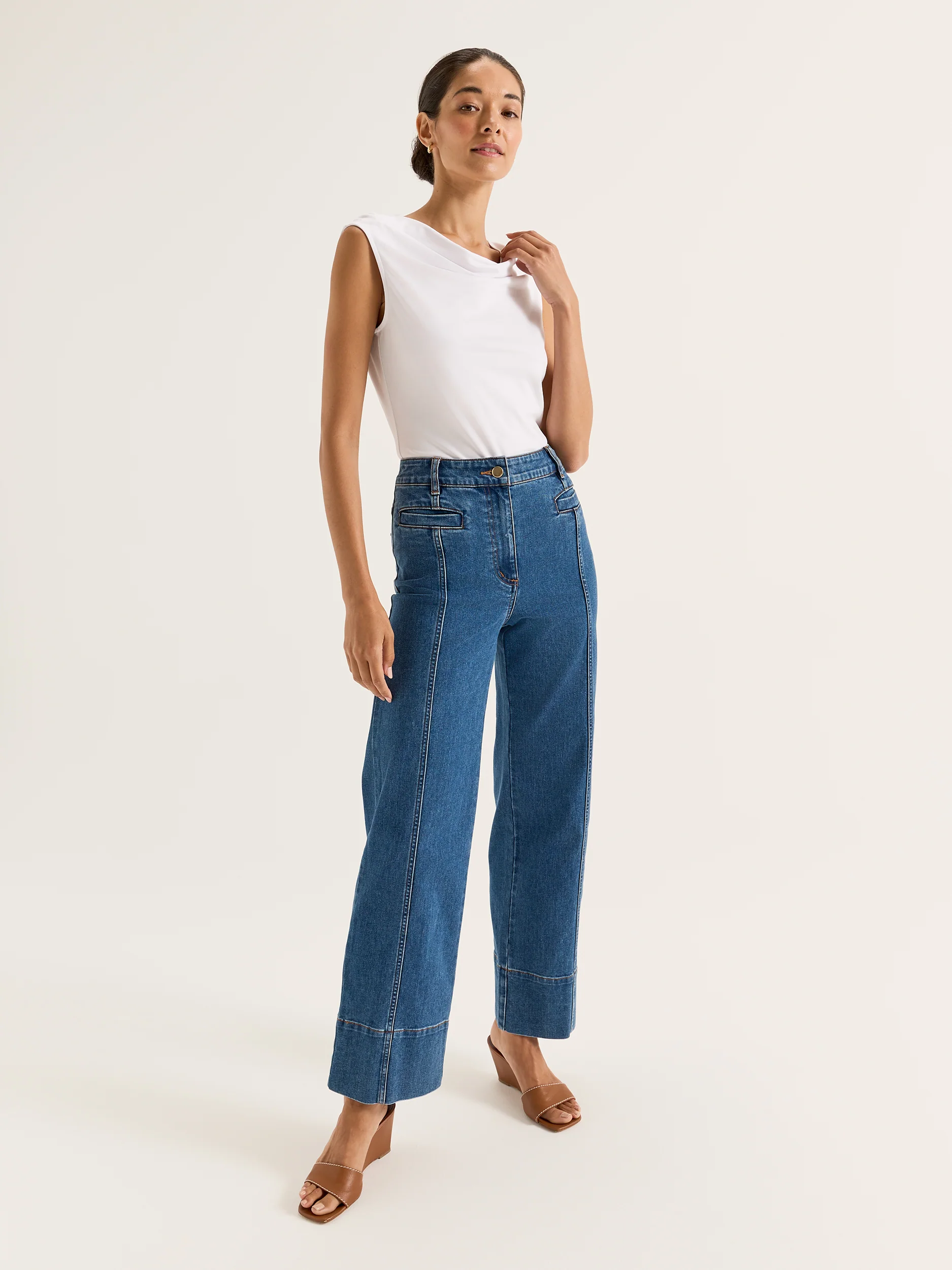 Elevated basics are proven to stand the test of trends, and the Tina Top is no exception. This wardrobe essential style is the perfect combination of a throw-on style with statement details that instantly uplift your outfits day or night. Made of a lightweight fabric with a flattering drape, the Tina Top is cut to a sleeveless silhouette with cowl neckline, curved hem, and Review monogram embroidery feature. Paired with go-to denim, this style is the definition of a “jeans and a nice top” outfit.